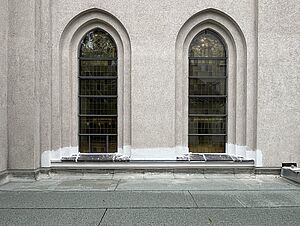 Der Aufbau auf der Dachterrasse über dem neuen Multifunktionsraum wurde gegossen. Auch der Durchgang vom Kirchenschiff in diesen Raum wurde erstellt. Im Boden wurden wichtige Rohre verlegt. Und auch die ersten neuen Fenster sind eingezogen.